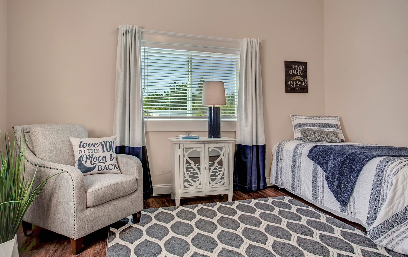 Whether your loved one is moving from a long-held family home, condo or apartment, a few key questions are usually top of mind: Will I have my own private room? My own bathroom? A view? Yes, yes, and yes. Not only will we provide a spacious private room with views of the surrounding gardens, but also with a private half-bath equipped with every amenity.